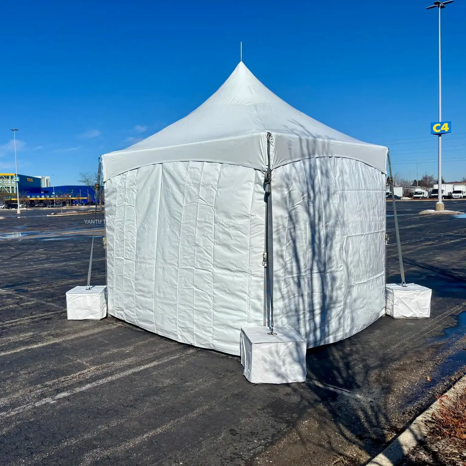 - Sidewalls: solid white walls, window walls, cafe walls, clear walls